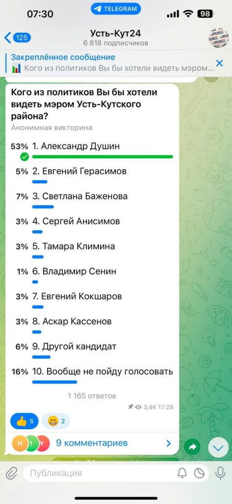 Пришел ответ от ТИК Усть-Кутского района, в котором они отрицают предвыборную агитацию мэра Анисимова, в виде встреч и избирателями Председатель Усть-Кутской территориальной избирательной комиссии Юлия Хачатрян, на наш запрос о незаконной предвыборной агитации мэра Анисимова, прислал нам ответ. В нем чиновница отрицает предвыборную агитацию, так как якобы выборы еще не объявлены, а Анисимов вовсе не агитирует за себя, а просто типа встречается с населением, якобы в рамках своих полномочий. Почему он не делал этого все предшествующие пять лет в должности, Хачатрян не уточнила. Более того, такие действия грубо нарушают Федеральный закон от 12.06.2002 N 67-ФЗ (ред. от 23.05.2025) "Об основных гарантиях избирательных прав и права на участие в референдуме граждан Российской Федерации". Мы конечно обжалуем эту отписку и все еще ждем ответа от прокуратуры, по поводу незаконного сбора персональных данных агитаторами мэра во время таких встреч.